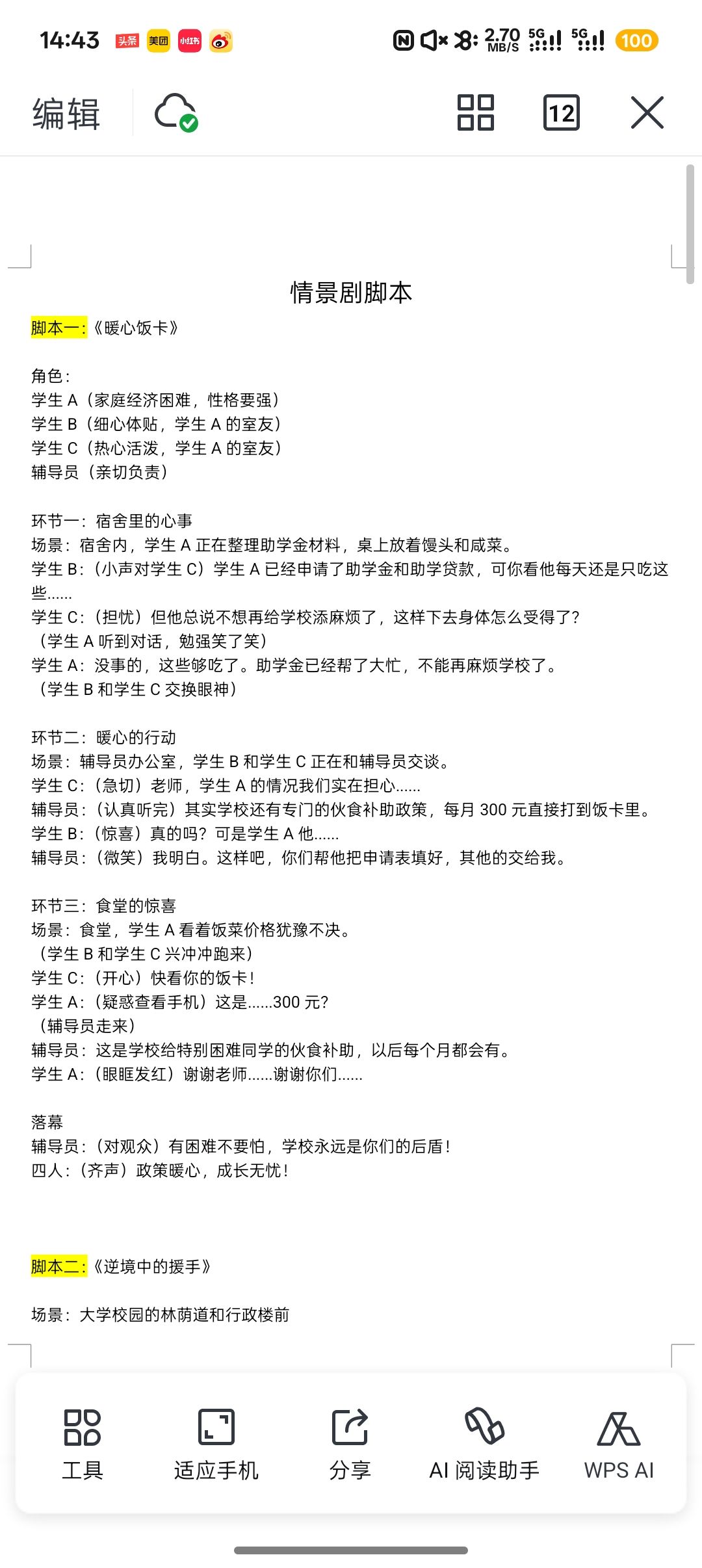 脚本设计注重深度与广度,详细阐述了各资助项目的申请资格、办理程序及其深远的社会意义。通过情景再现、实例分析等多样化表现手法,促使广大同学能够在愉悦的学习氛围中掌握资助信息,进而有效支持亟需援助的同窗。