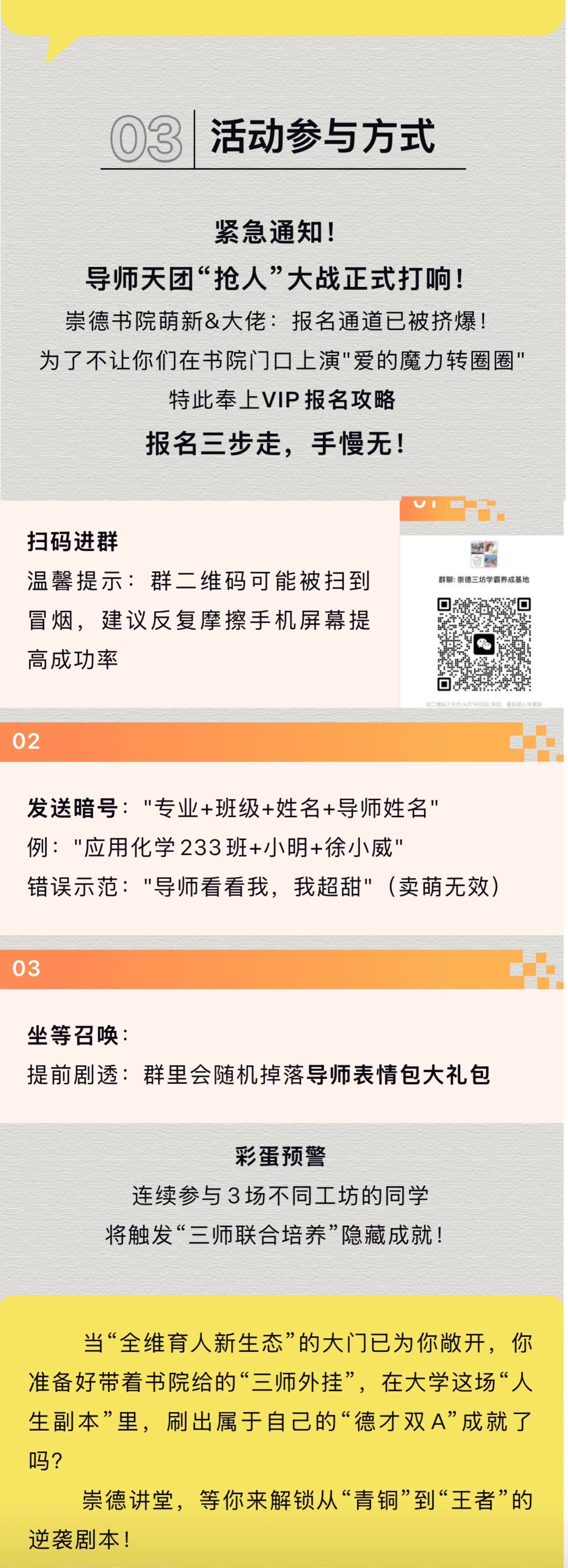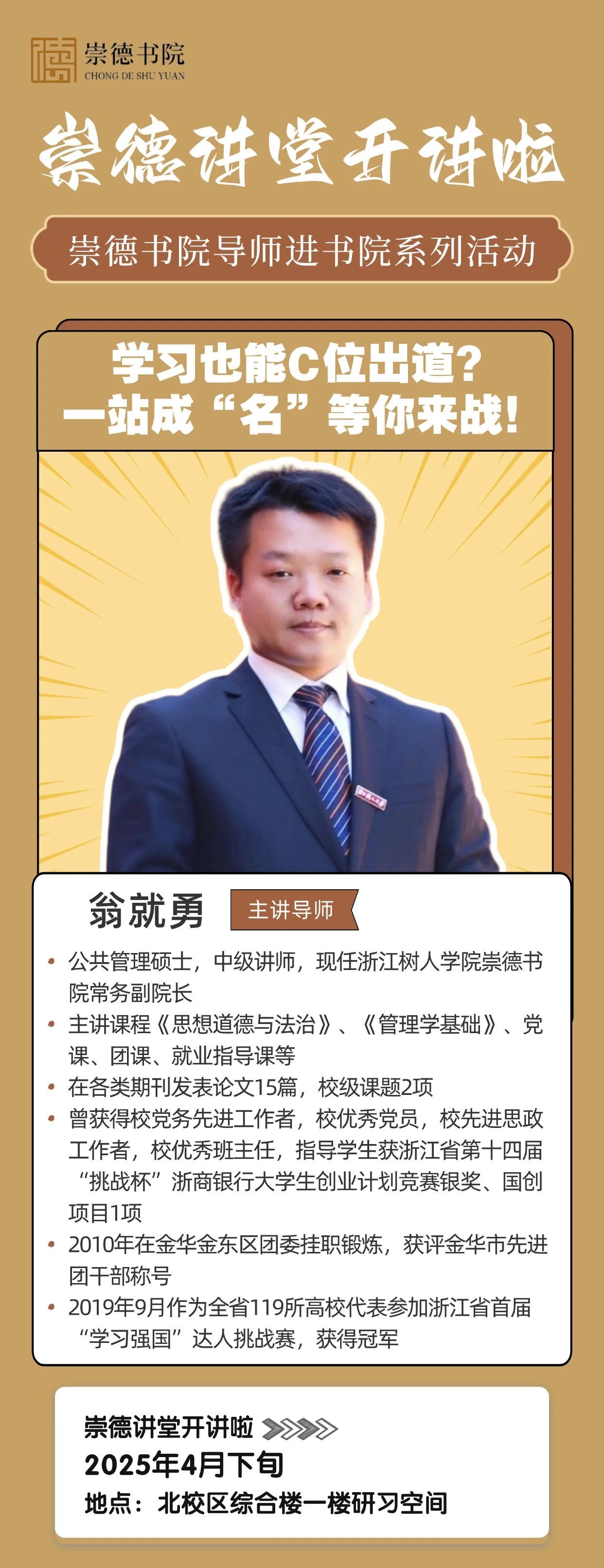 为深化书院制育人实践,崇德书院创新打造“三师联动”育人矩阵——专业导师、德育导师、产业导师协同发力,以“崇德讲堂”为载体,推出多元导师进书院活动。通过文化浸润、学术赋能、实践拓新三大维度,为学子提供全方位支持!