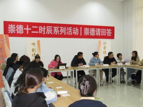 经前期通过调查问卷收集问题53条,调研后,整理合并同类问题,2025年4月1日下午,在崇德书院北校区综合楼研习空间内,一场旨在搭建 温馨、开放交流平台的“崇德请回答”座谈会如期举行。 座谈会分层分类的解答问题15条,后续跟进3条,“崇德请回答”让每一条建议、需要都有实实在在的回应。