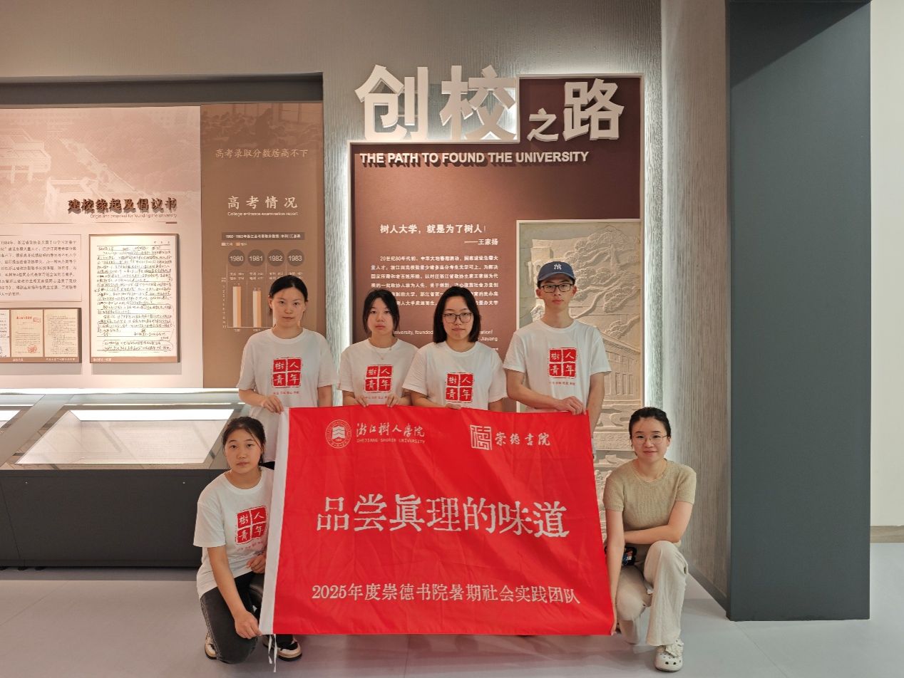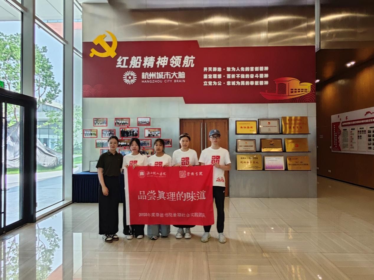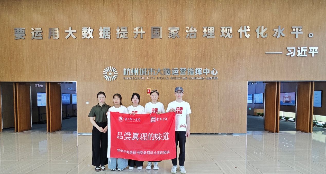 蝉鸣未央,小暑之际,浙江树人学院崇德书院“一‘路’同行”暑期社会实践团在崇德书院辅导员朱芷霄老师和树兰国际医学院林琴老师的带领下,怀揣“循迹溯源、追溯真理”这一实践信念,重走习近平总书记浙江足迹。7月7日至14日,团队先后前往该校拱宸桥校区陈列馆、杨汛桥校区校史馆及杭州市云栖小镇城市大脑运营指挥中心,开展为期一周的社会实践活动。从拱宸桥畔的办学初心到云栖小镇的数字浪潮,实践团在校史钩沉与科技前沿的交织中,触摸城市与高校同频共振的时代脉搏,勾勒出一幅“精神传承-科技革新-校城共兴”的立体实践画卷。