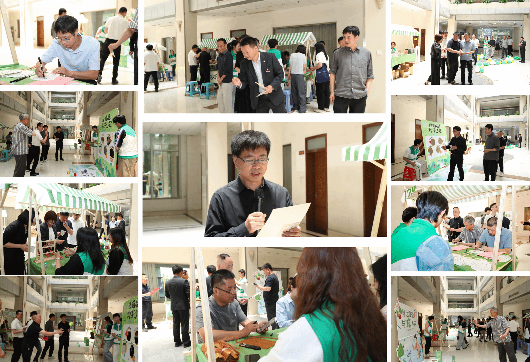 上午11时许,行政楼一楼变身“端午文化长廊”。红绳轻绕、粽叶飘香、墨韵流转,一场跨越千年的民俗雅集,让校友们在传统中找回青春的温度。