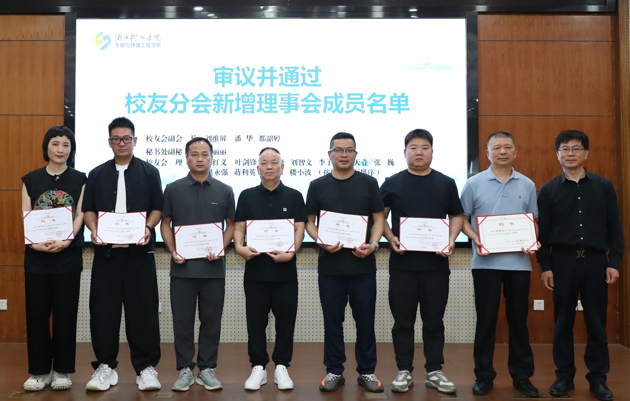 行政楼六楼会议室,阳光透过云纱。会长邱耀彰首先发表热情洋溢的致辞讲话,他强调,校友会将始终铭记母校“崇德重智,树人为本”的校训精神,以“凝聚校友、服务母校、回馈社会”为使命,搭建起校友与母校的情感桥梁。紧接着,会议审议通过新增生物与环境工程学院院长、交叉研究院院长刘维屏,学院执行院长潘华、交叉研究院副院长都韶婷3人为校友会副会长;牛丽丽为校友会秘书处副秘书长;蒋宝永、洪永强、李子明、叶剑锋、邢越锋、楼小波、蒋利英、刘智文、张 巍、方红义、张天壹等11位校友为理事的名单。新增理事中,既有深耕环保领域的企业家,亦有服务地方发展的党政干部,他们的加入为校友网络注入强劲动能。