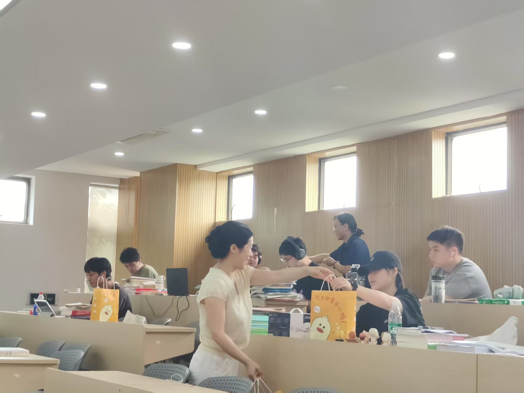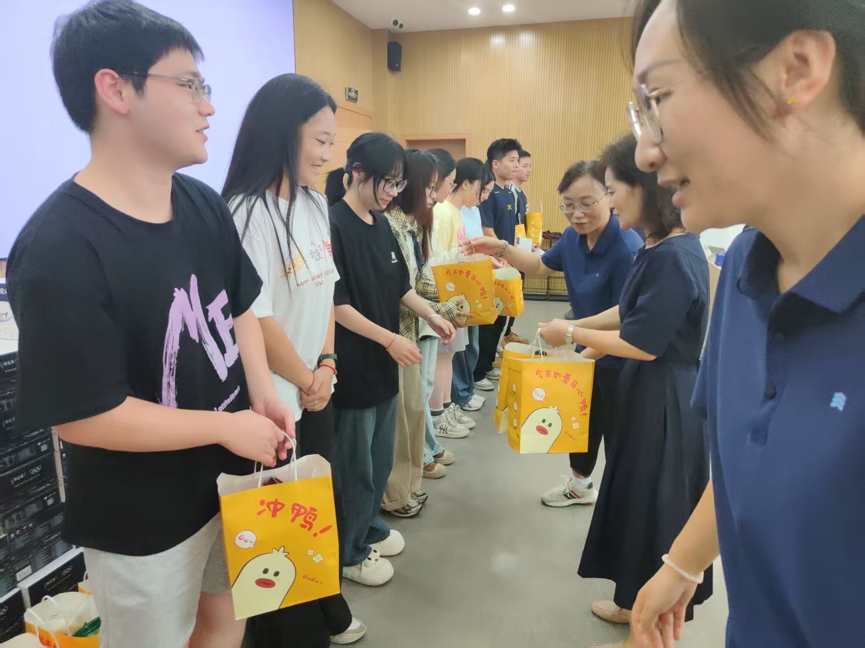 随后,冯淑娟带领老师们为同学们送上了小礼物。每份礼物都承载着学校和学院对考研学子的深切关怀与殷切期望。同学们脸上洋溢着温暖的笑容,纷纷表示感受到了学校和学院的关心,将把老师们的教导转化为学习的动力,朝着目标更加坚持不懈地努力。