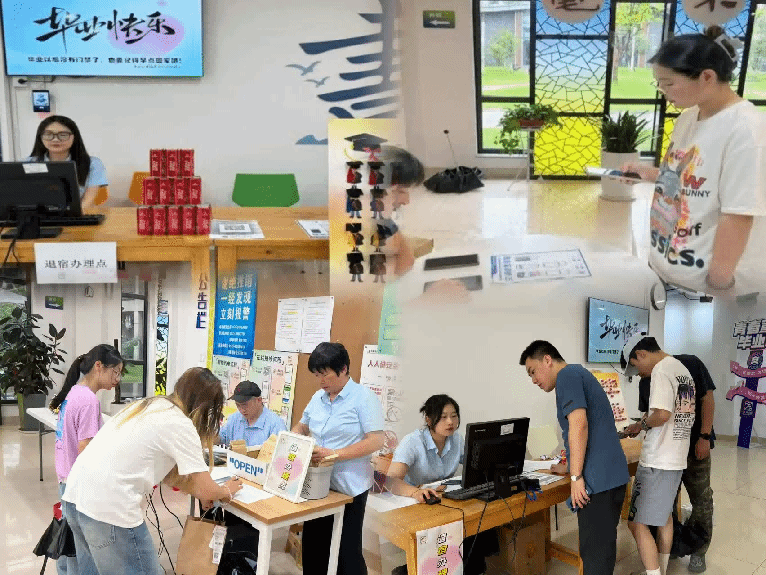 毕业生离校安全专项工作: 在毕业生离校高峰期,中心提前部署,优化离校手续办理流程,提供便捷服务;组织力量对毕业生寝室进行专项深度清扫及全面安全隐患排查,确保寝室设施完好、环境整洁,为后续新生入住及假期安全打下坚实基础。