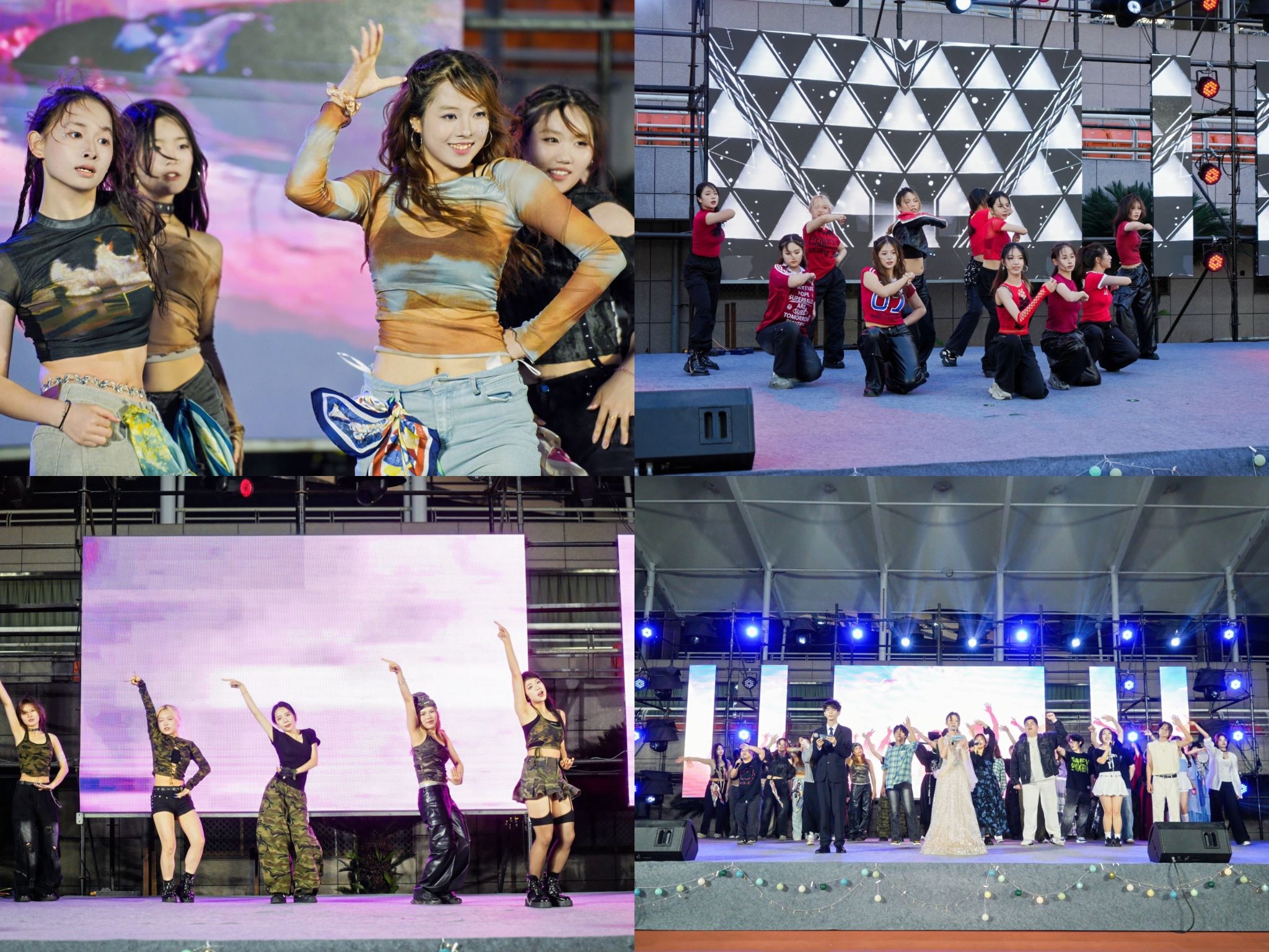 当暮色浸透田径场的草叶,音乐节的灯光如银河倾泻。这片被音乐点亮的草地,已然成为青年精神原乡的立体投影:街舞社的《Ant' my fault》以肢体语言解构时空,裴熙媛《遇见》的清音恰似月光漫过琴弦;龚科米等人的民谣串烧,将《七里香》的记忆嫁接在《安河桥》的月色里;校十佳歌手、学生社团及音乐舞蹈达人将轮番登台,带来《点燃银河尽头的篝火》《刻在我心底的名字》等经典曲目,华韵夏章汉服社的汉服走秀《惊鸿流韵》与中场抽奖环节无缝衔接点燃全场热情。现场观众的荧光棒划出炫彩的弧线,工作人员、志愿者在音浪中守护着美育的边界。台上的光影律动与市集摊位的点点灯火交相辉映,青春的激情与创意的温度在这一刻完美交融,为整场活动写下热血而温暖的注脚。
