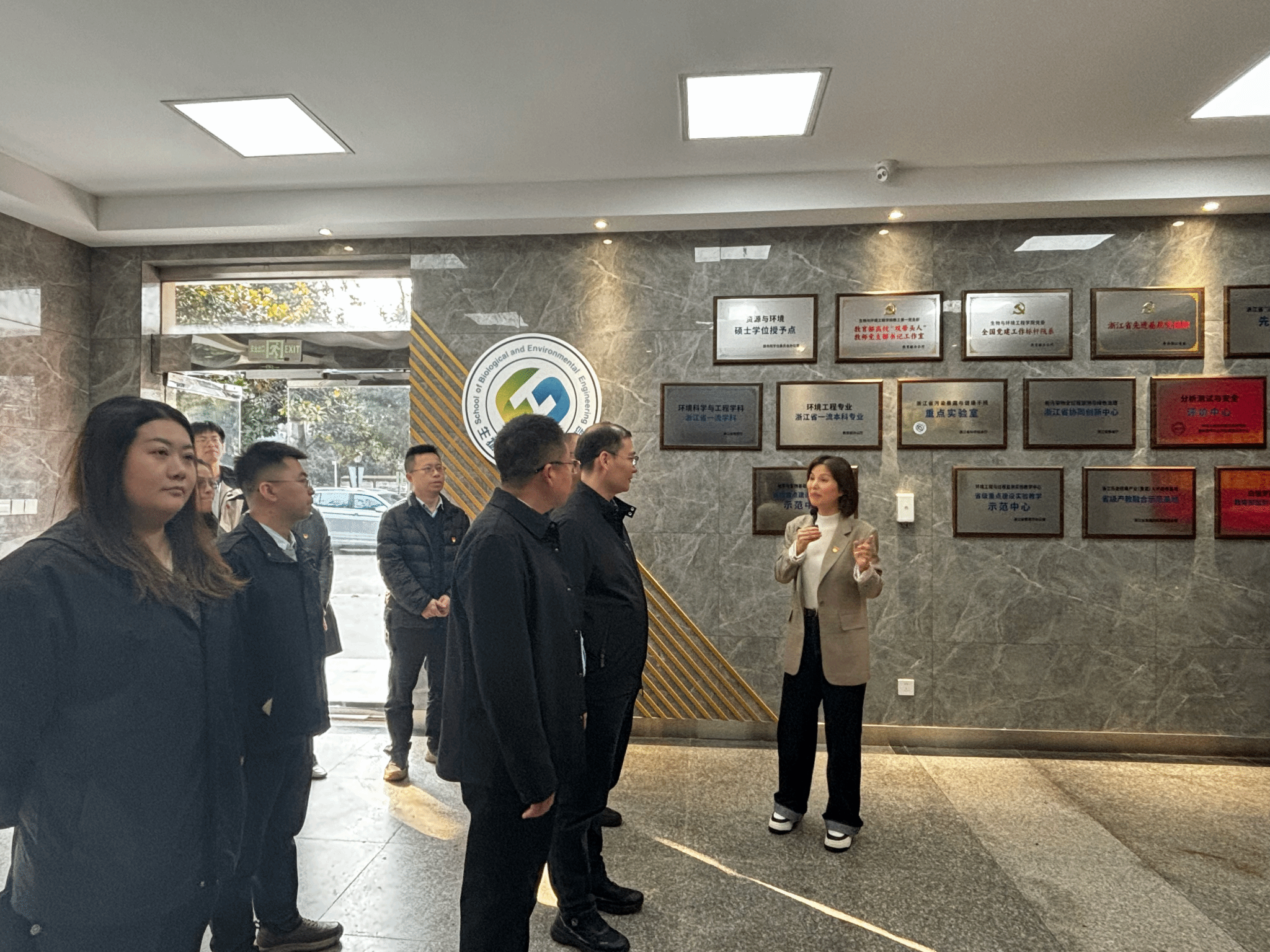 本次调研聚焦高校党建与思政工作的创新实践。代表团首先走进生物与环境工程学院,学院党委书记应海儿系统介绍了学院品牌理念、院训精神、平台建设、学科科研及人才培养等整体情况。教工第一党支部书记徐冬梅详细阐述“冬梅工作室”的建设理念、运行机制与育人成果,引导参观并现场展示教学创新与实践育人的特色成效。双方围绕标杆院系申报建设、党支部规范化建设、党建与教学科研深度融合等议题展开深入交流。