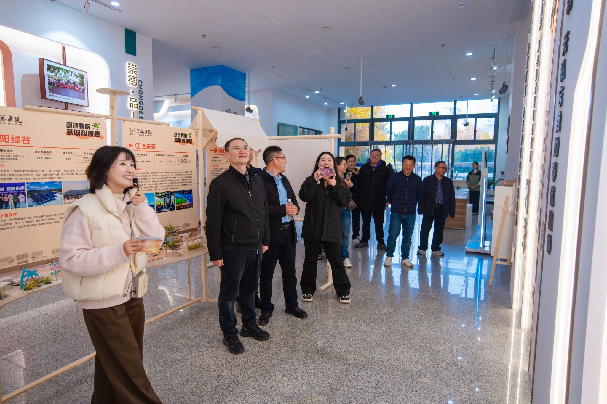 在崇德书院,代表团进行实地考察。作为我校书院制“一站式”学生社区建设的重要平台,崇德书院整合党建思政、学业指导、生活服务、文化活动等功能,构建协同育人新生态。书院常务副院长翁就勇与崇德书院医学院护理学 234 班学生张可儿担任 “崇德推荐官”,详细介绍书院空间布局、管理模式、品牌活动及育人成效,双方就书院制改革中的体制机制、队伍建设、特色凝练等问题深入研讨。