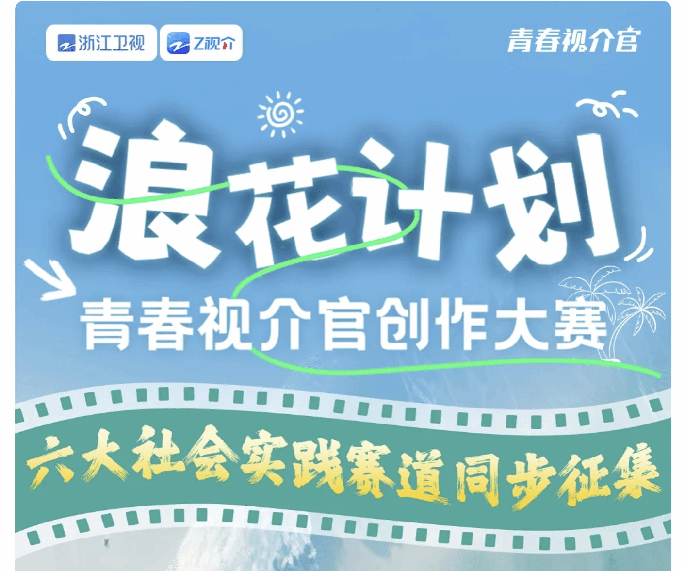 浙江卫视(中国蓝新平台)携手全国高校团委及社会各界资源,共同启动“浪花计划”青春视介官暑期实践短视频/图文创作大赛系列活动。第一赛段活动投稿时间:6月10日12:00-9月15日12:00,平台将依据点赞排名和助推排名,设立浪花热力奖和星火燎原奖,并颁发创作独家激励奖金。具体参赛机制及时间规划见附录2。